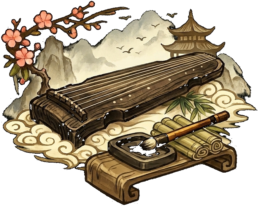 古琴,又称七弦琴,是中国最古老的弹拨乐器之一,距今已有三千多年历史。古琴音色深邃苍古,位列琴棋书画四艺之首,是中国文人精神的重要载体。其形制、指法、琴曲与琴论共同构成了深厚的古琴文化体系。