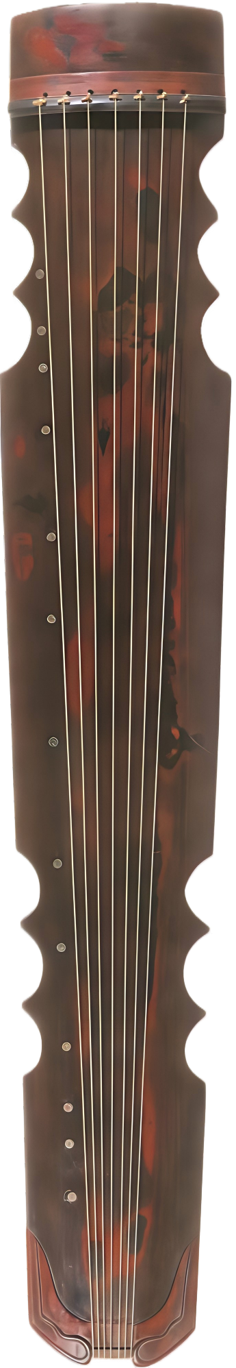 古琴面板常用桐木、杉木等,上施漆灰,历时既久可见蛇腹、流水、梅花等断纹。琴面承载岳山、七弦与十三徽,是右手弹拨、左手走手取音的主工作面,也是铭文、题款与审美意匠最集中之处。